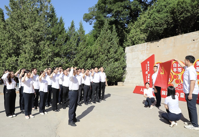 在楊家?guī)X革命舊址,集團(tuán)黨委書記、董事長(zhǎng)卜國(guó)平帶領(lǐng)全體黨員,面對(duì)黨旗高舉右手,齊肩握拳,再次莊嚴(yán)宣誓。“我志愿加入中國(guó)共產(chǎn)黨……隨時(shí)準(zhǔn)備為黨和人民犧牲一切,永不叛黨。”鏗鏘恢宏的誓詞,聲聲震耳,強(qiáng)烈震撼著在場(chǎng)的每一位黨員,一字一句,神圣而豪邁,充分體現(xiàn)了黨員同志們對(duì)中國(guó)共產(chǎn)黨的無(wú)限忠誠(chéng)和熱愛(ài)。隨后,在講解員的引導(dǎo)下,大家先后參觀中央大禮堂,毛澤東、朱德、周恩來(lái)等老一輩無(wú)產(chǎn)階級(jí)革命家故居,了解了黨的七大的歷史背景、會(huì)議過(guò)程和重要意義,重溫艱苦奮斗、自力更生的延安精神。
