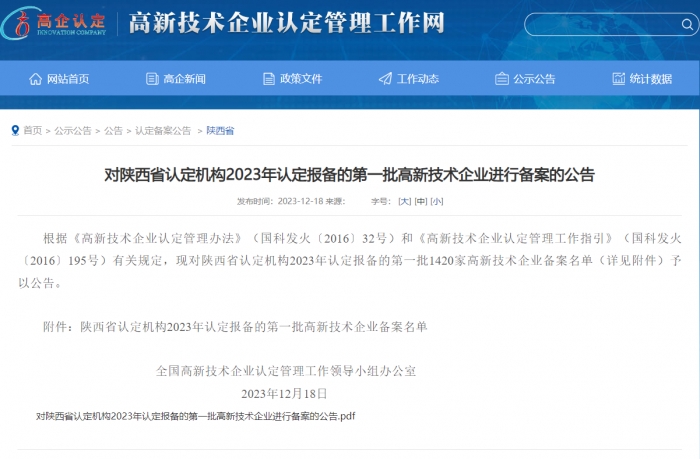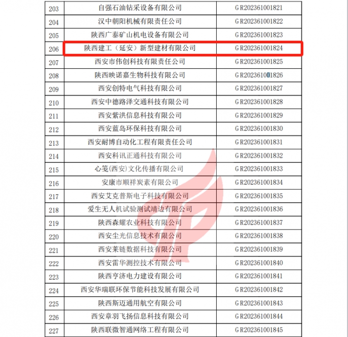 近日,全國高新技術(shù)產(chǎn)業(yè)企業(yè)認定管理工作領(lǐng)導小組辦公室公布了2023年陜西省認定的第一批高新技術(shù)企業(yè)名單,集團新型建材產(chǎn)業(yè)基地【陜西建工(延安)新型建材有限公司】通過國家級高新技術(shù)企業(yè)認定。